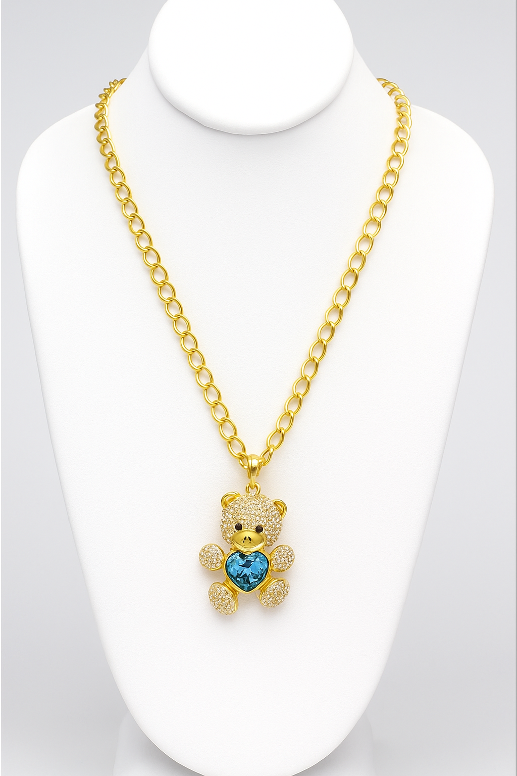 -Osito con corazón rosa: Un dije delicado y femenino con forma de osito, adornado con un corazón de cristal rosa en el centro, símbolo de ternura y amor.-Osito con corazón azul zafiro: Dije de osito brillante con pavé de circonias, realzado por un corazón azul profundo que aporta un aire elegante y llamativo.